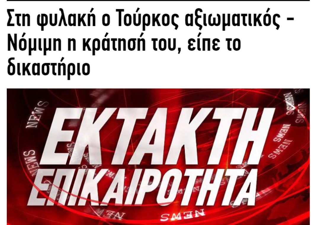 Στη φυλακή ο Τούρκος αξιωματικός -Νόμιμη η κράτησή του, είπε το δικαστήριο