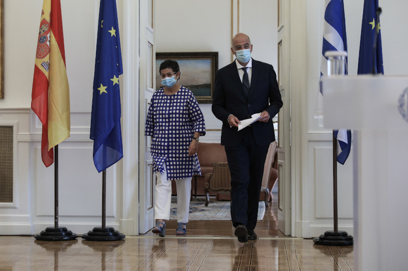 «Η ελληνική κυβέρνηση διαμηνύει πάντοτε ότι απαραίτητη προϋπόθεση για τον διάλογο είναι η έμπρακτη αποκλιμάκωση από την πλευρά της Τουρκίας. Δεν μπορούμε να συζητάμε όταν μια πλευρά προβαίνει σε ενέργειες που είναι αντίθετες με το Διεθνές Δίκαιο και το Δίκαιο της Θάλασσας», κατέστησε σαφές ο κ. Δένδιας κατά τη διάρκεια των δηλώσεών του, μετά τη συνάντηση με την Ισπανίδα ομόλογό του στο υπουργείο Εξωτερικών.