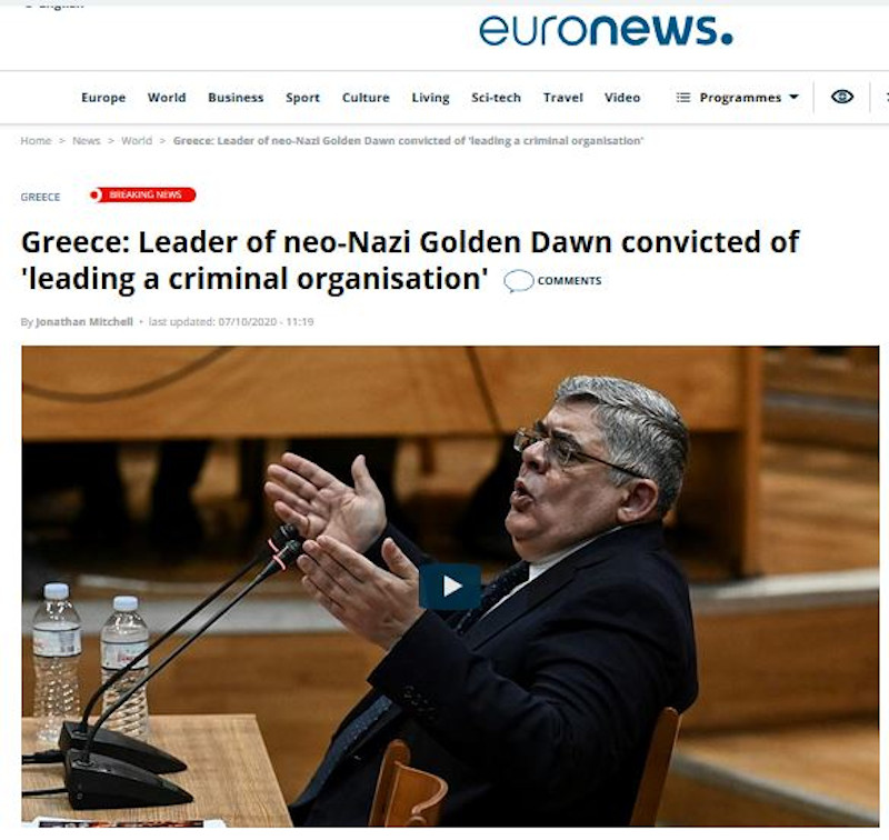 Την είδηση της καταδίκης της Χρυσής Αυγής μετέδωσαν εκτάκτως πολλά δίκτυα, όπως το αμερικανικό ABC, αλλά και το Εuronews, με τίτλο «Ελλάδα: Ο ηγέτης της νεοναζιστικής Χρυσής Αυγής καταδικάστηκε για διεύθυνση εγκληματικής οργάνωσης».